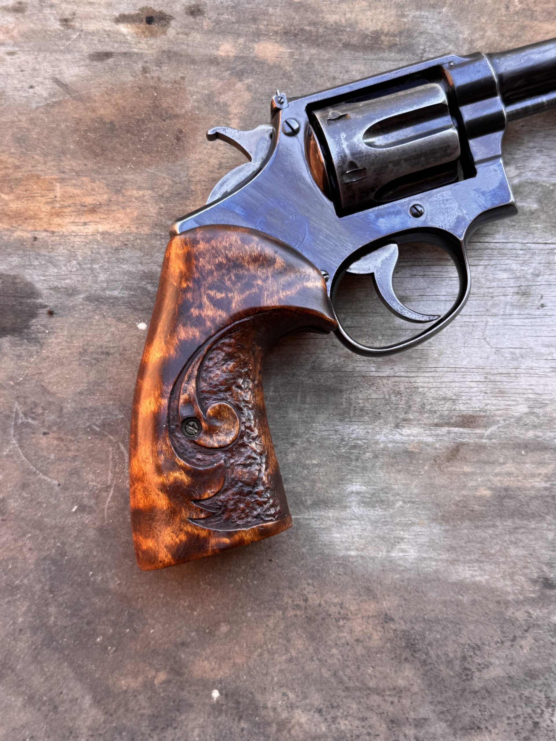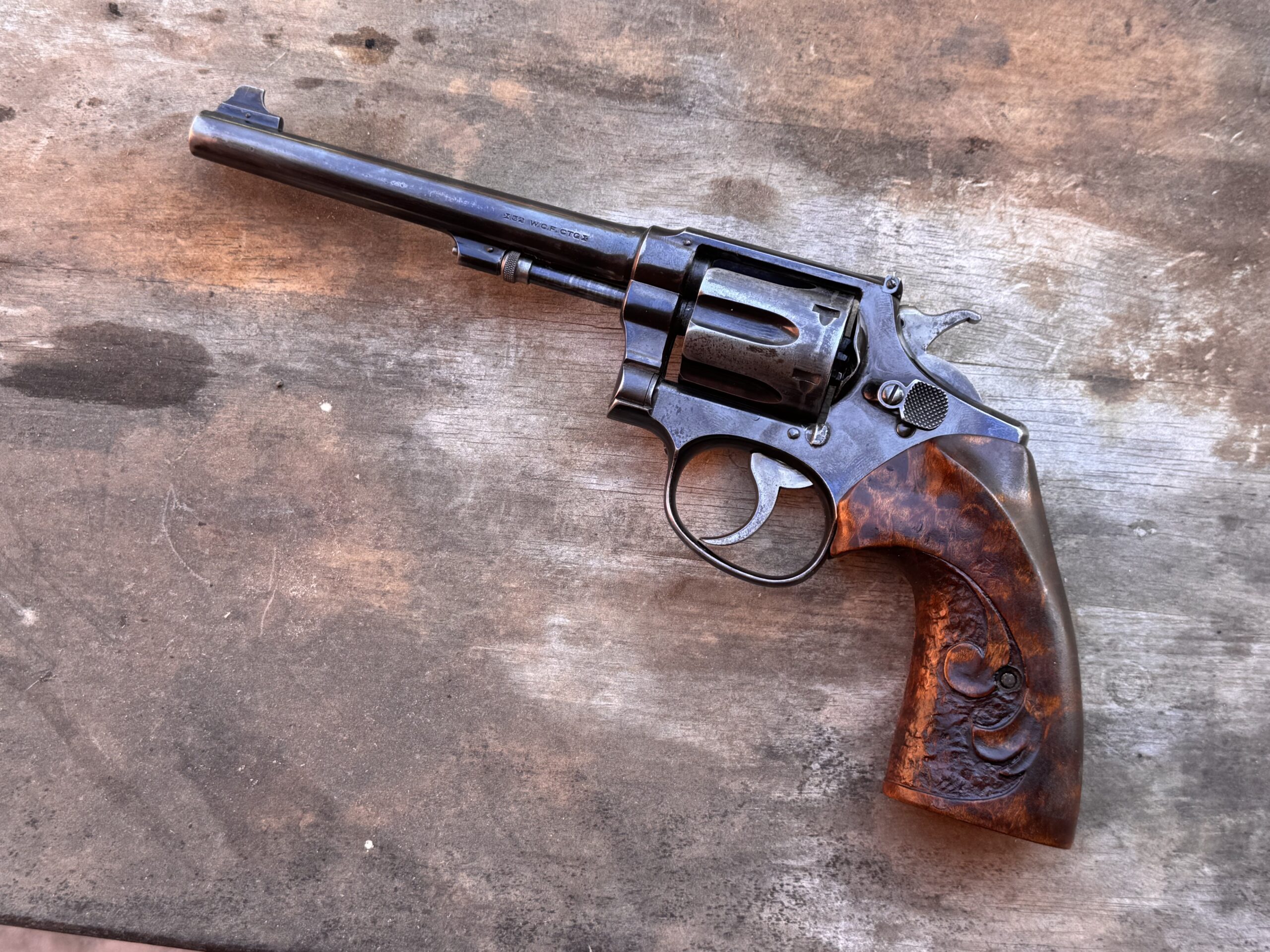 K frame custom grips. Look similar to Herrett Troopers. Came on an old 32-20 HE from the 1920s but I do not beleive they are that old.