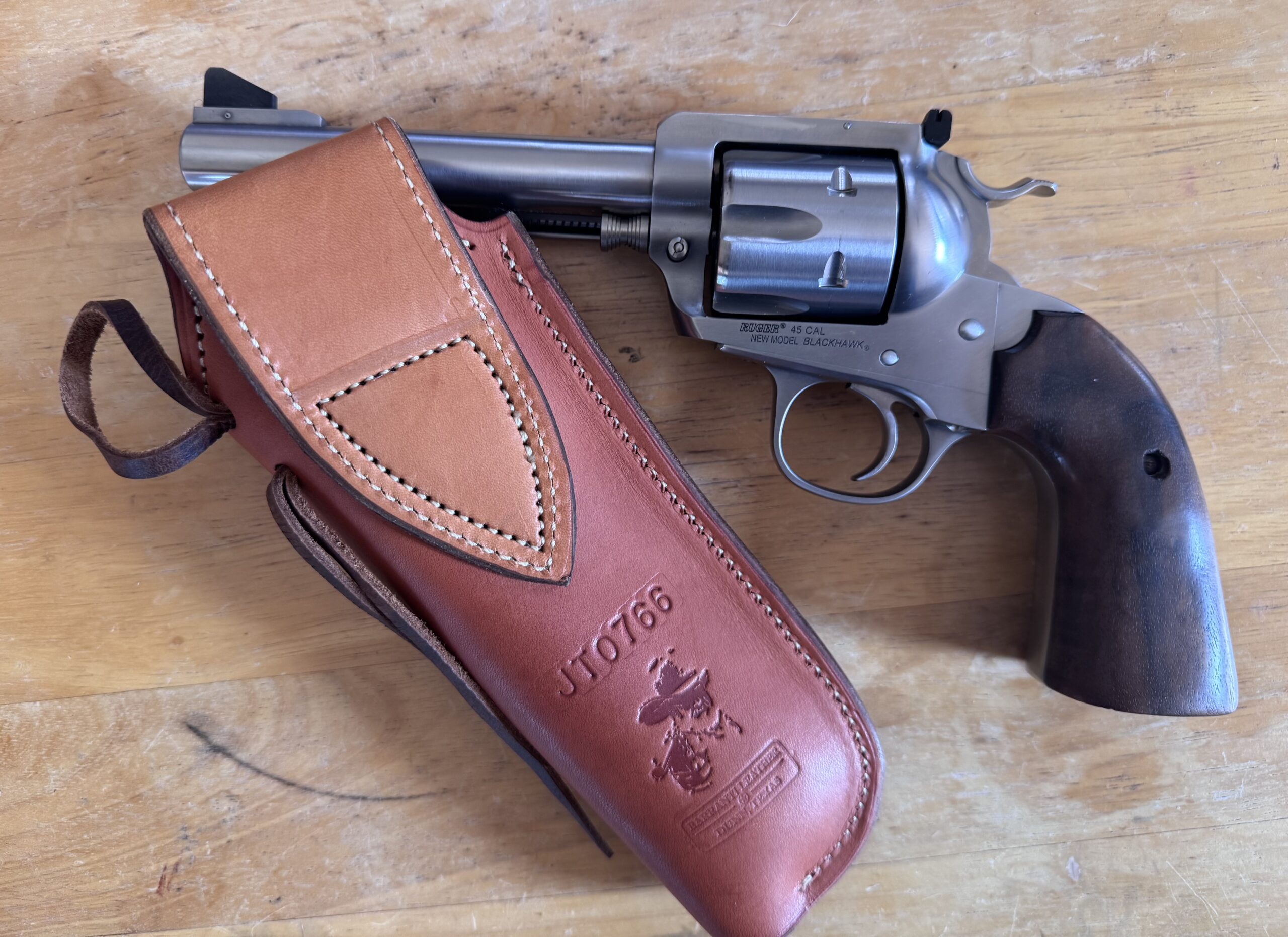 Ruger mid frame Bisley 45 convertible Taffin Perfect Packing Pistol with Barranti leather 40th anniversary holster.