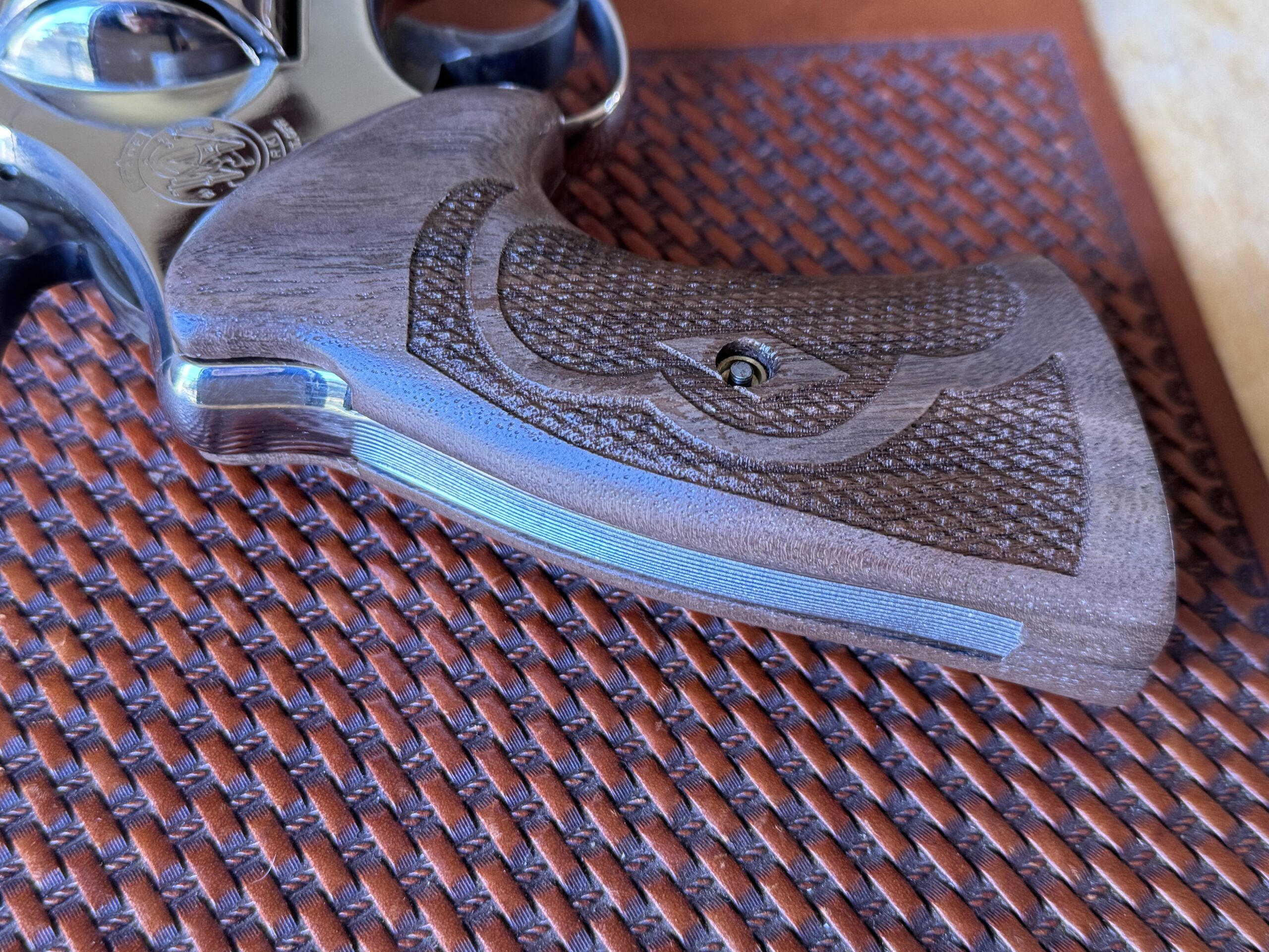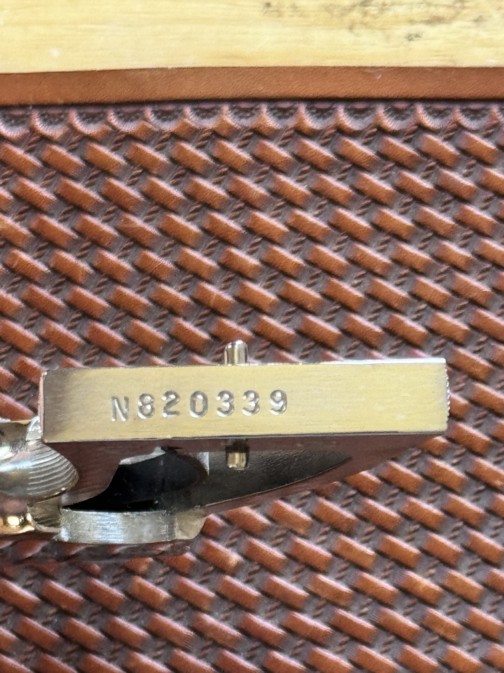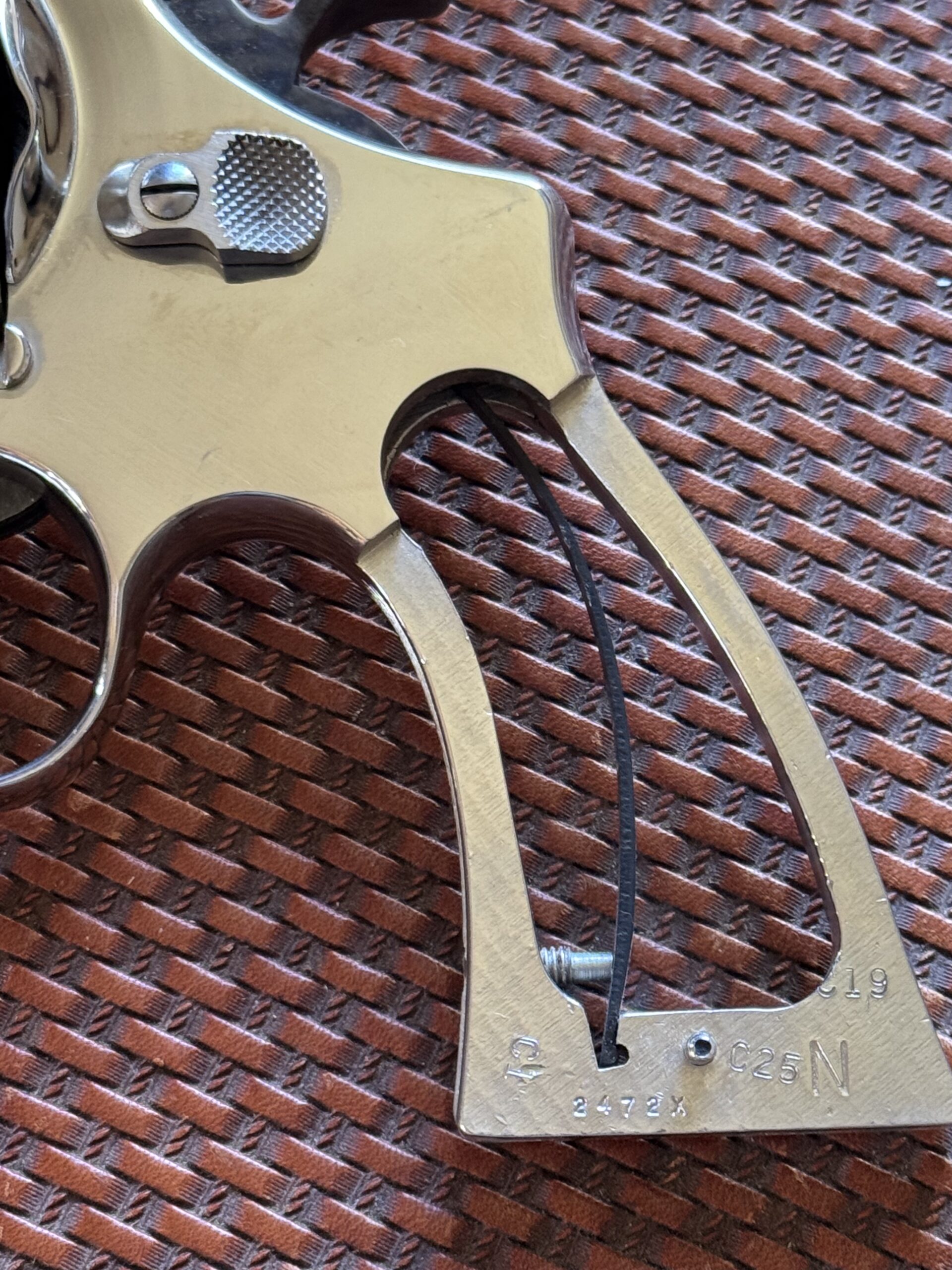 Very nice used 6″ nickel model 29-2. I dont normally collect 6″ pr longer guns. I bought this one to rob the Target style Sambar Stag grips that were on it. I put some of the Roper clone grips from NC ordnance on it. I have several sets and most are nice. Much nicer than the other Roper clones sold on the internet. They fit pretty good but are slightly proud at backstrap.