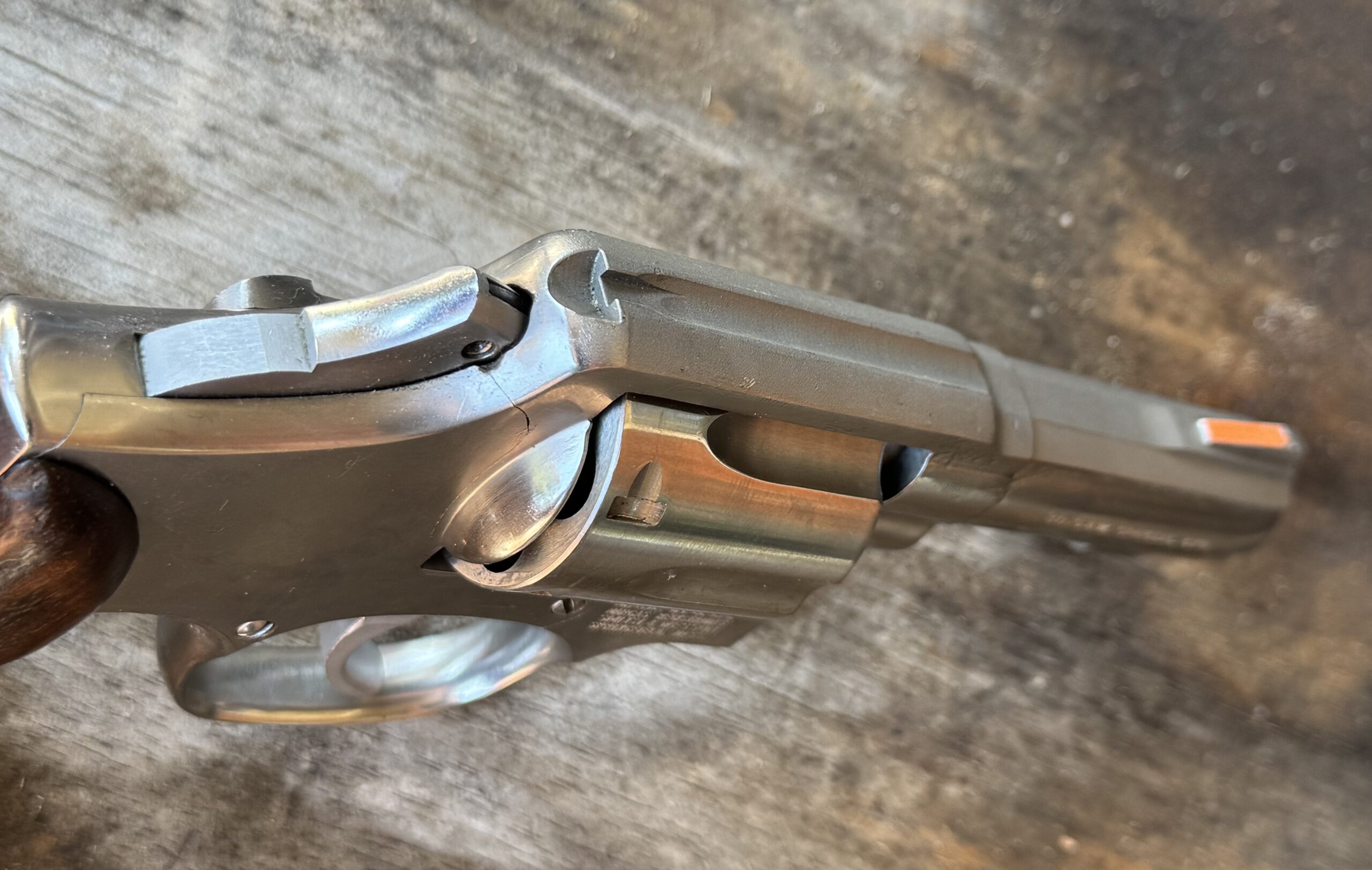 Early guns did not have the serial number on the left side of the frame under the cylinder, later guns had the serial number on the Butt, frame and yoke cut out. My 64-3 NY-1 came from the NYPD Equipment section and has an AWT prefix, it is a early gun Matte finish with the serial number on Butt only, MY model 64 2″ RB which is a later gun (1993) is a frosted finish serial number on butt, yoke cutout and frame below the cylinder (earlier models had dot matrix).