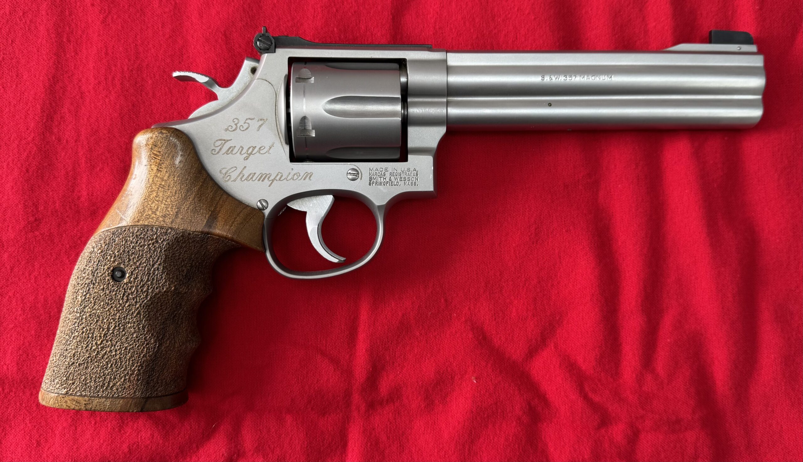6″ 686-3 With target Nill grips. Target Trigger and Hammer with Target Champion markings. Rumor has it this was for a European contract. $1195
