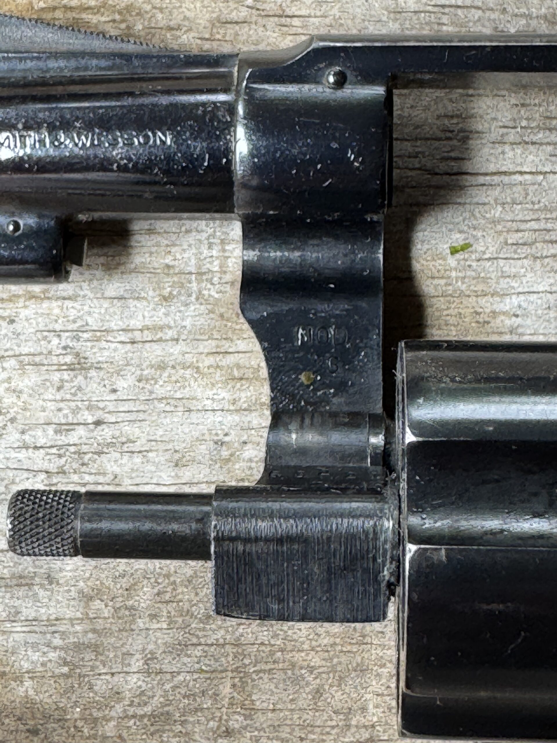 Number matching pre 68 diamond magna grips. This one has some finish wear nut is tight and has a very good action. The spur was broke so I abbreviated and polished the radius. I can fully bob it is buyer wishes.