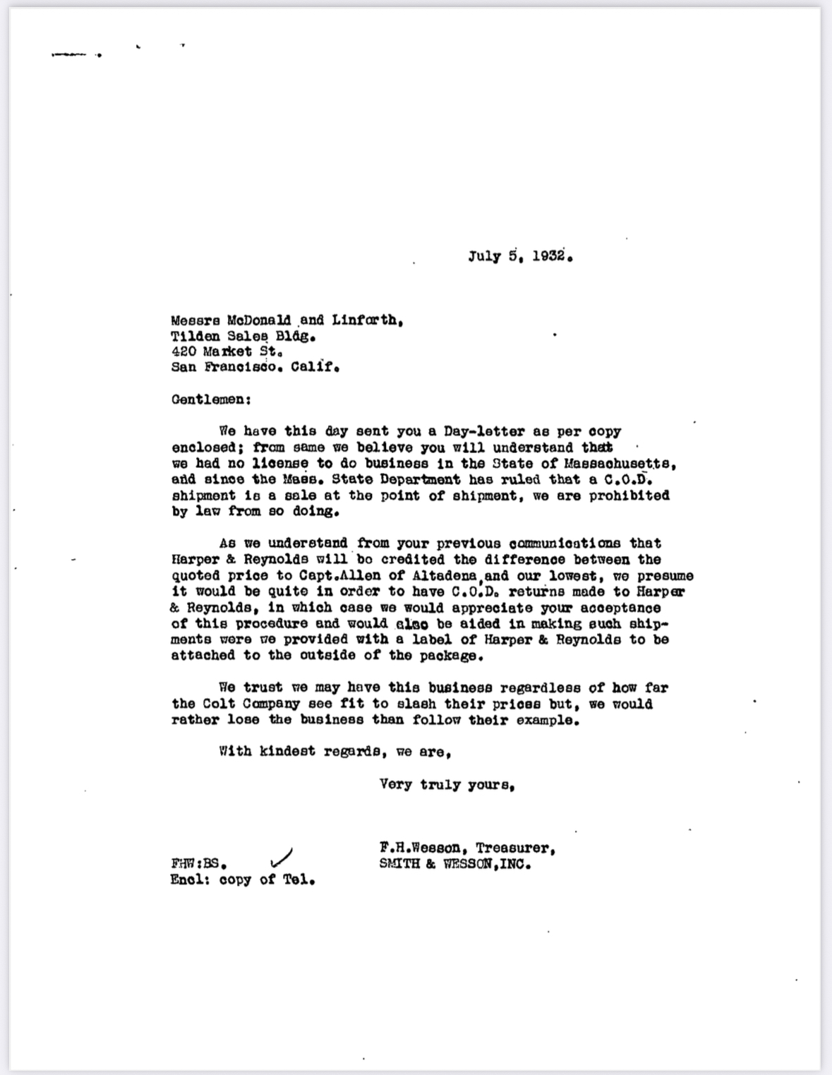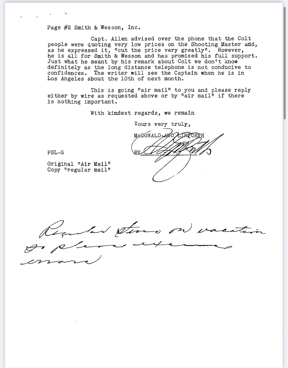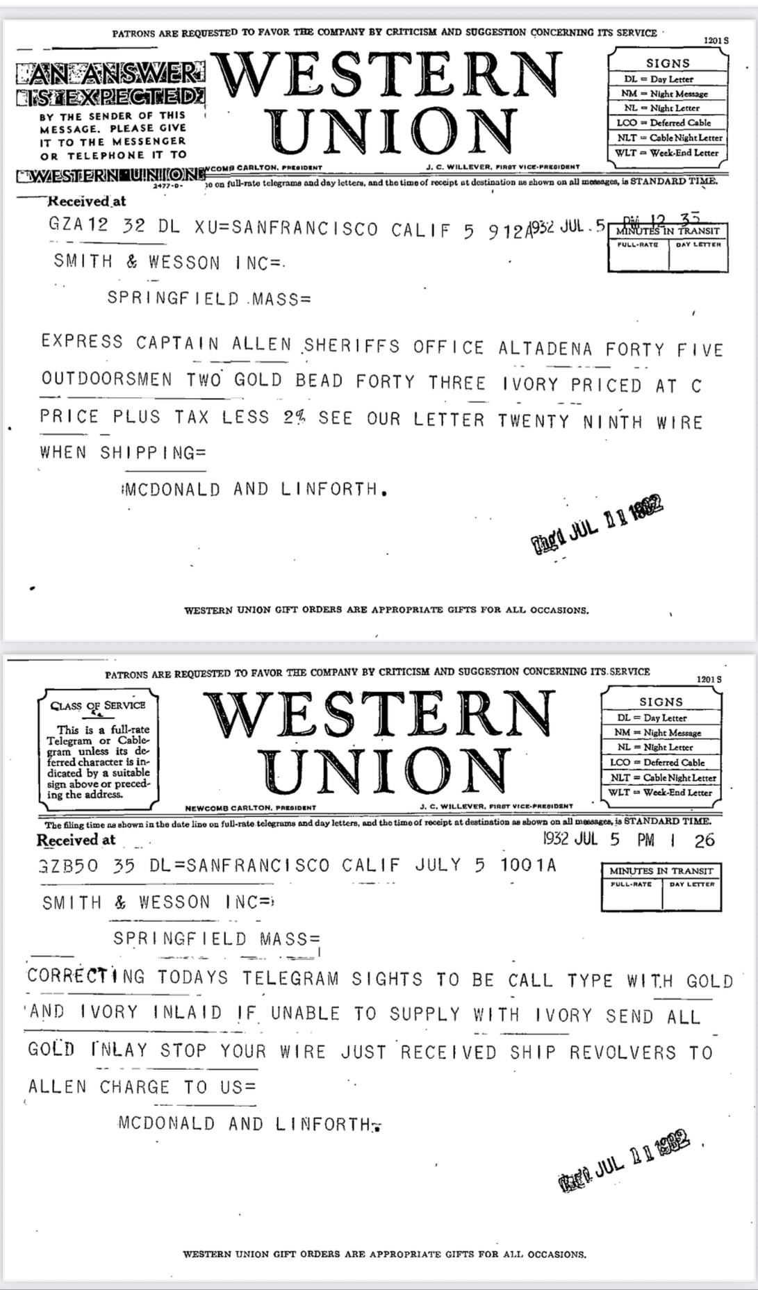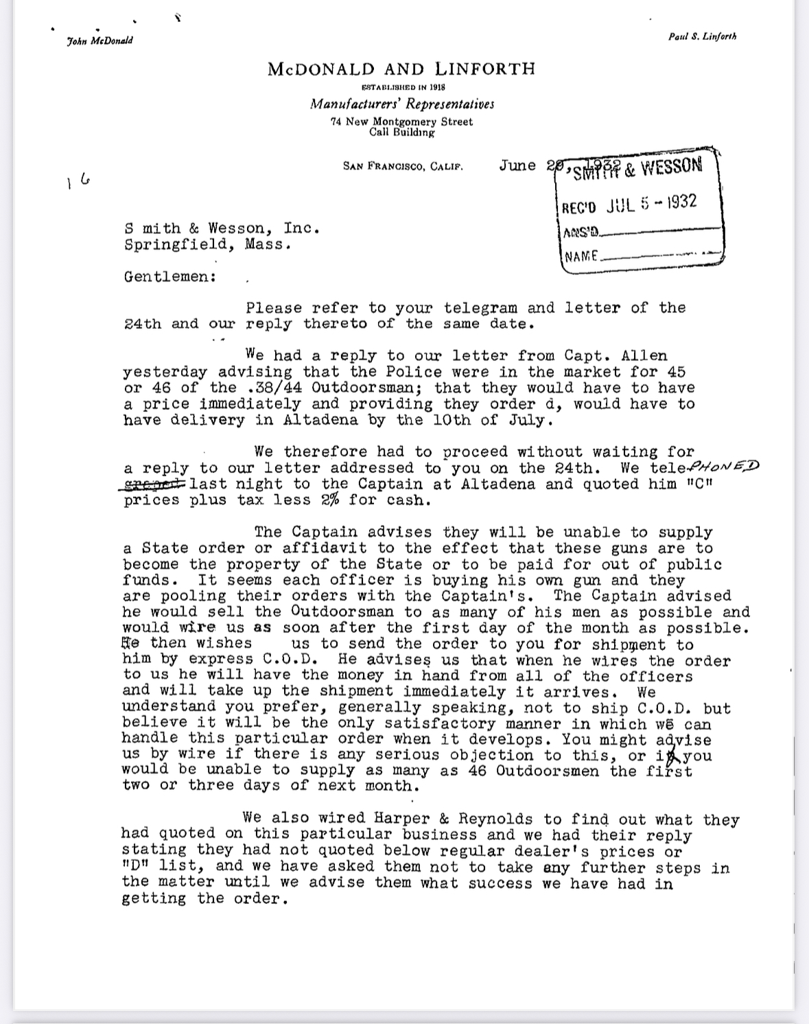 SN 41690 was one of a 45 gun individual officer order put together by Captain Allen. It was shipped July 1932 to Captain Allen at Altadena station LASD.